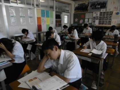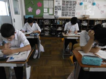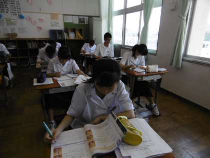 2年2組の英語の授業です。「英語落語」を読むことに挑戦しました。落語の「オチ」が何なのか、読み進めるうちに少しずつわかってきた生徒もいたようです。