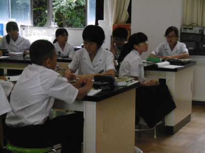 1年2組の理科の授業です。「いろいろな物質」の単元で、金属を見分ける方法は何なのか、小学校での学習を思い出しながら意見を述べ合っていました。教科担任は昨年度、千本小や第二小へ出向いていき、本単元に関連する授業を行いました。今日は、小学校での学習が中学校にうまくつながった授業でした。