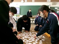 3年2組の社会の授業です。「共生社会を目指して」という単元の学習です。「本当の平等とは何かを考える」ことが本時の課題でした。