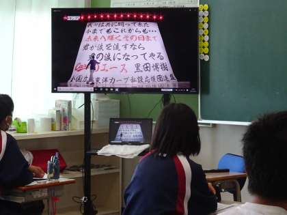 3年1組は第1回目の道徳の授業です。「背番号一五が歩んだ道」黒田選手の話ですね。