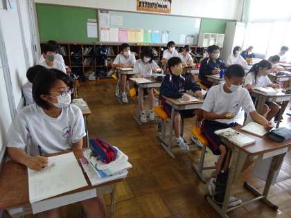 2年1組は国語の授業です。一つの単語で二つの読み方があるものを、確認しています。いろいろあるものですね。