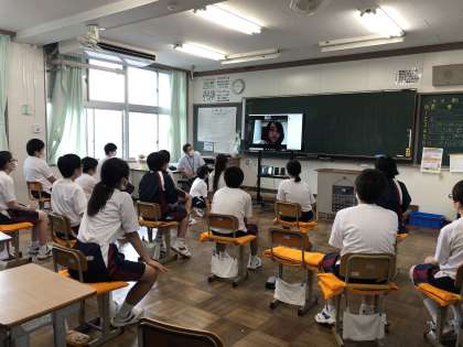 本日の1年1組の授業では、JICAの活動で外国の水泳選手の育成に関わっていた方と「Zoom」でつながり、いろいろな話を聞き生徒からも様々な質問をしました。実際に世界で活躍している方の姿にふれ、オリンピック・パラリンピックへの関心が高まりましたね。