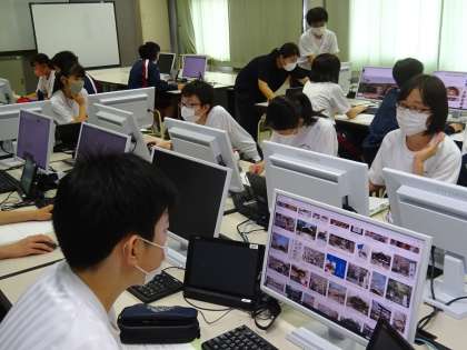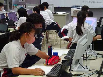 2年1組は言語読解の授業です。「沼津特集」沼津市の特色を詳しく調べています。