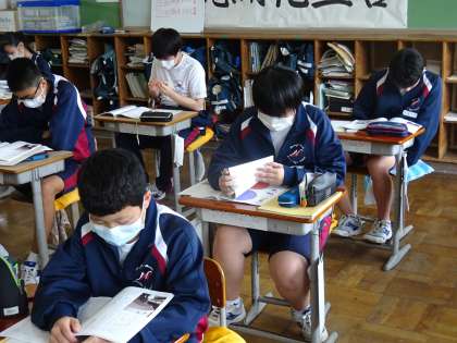 3年1組は道徳の授業です。差別や偏見を無くすために「伝えたいことがある」の学習です。日本人が忘れてはいけないことですね。