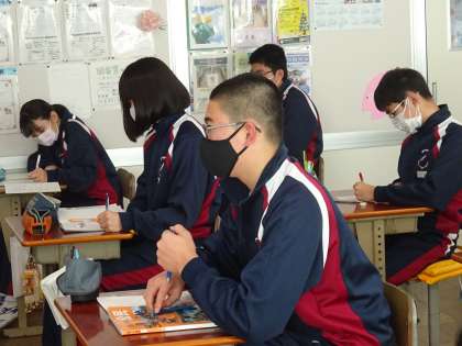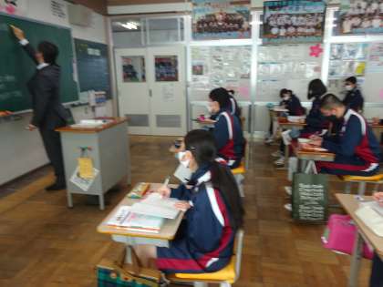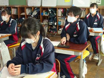 3年1組は社会の授業です。歴史分野の復習をしています。