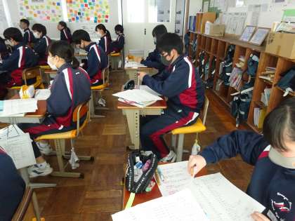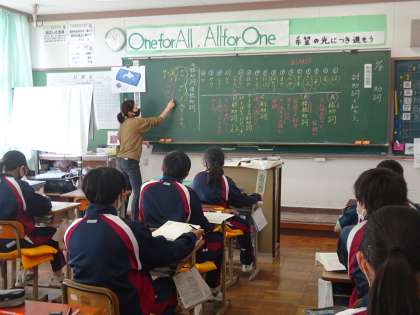 2年2組は国語、「文法」の授業です。副助詞について学習しています。