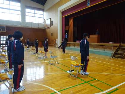 3年生は体育館で卒業式の練習をしています。先生方も、どうしたら3蜜を避けられるか、安全に卒業式が行えるかを考えています。