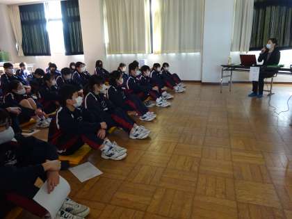 今年度は市立病院の主任助産師 佐藤郁子さんから性と生に関する幅広い知識を学びました。出産の動画を見たり、妊婦体験、赤ちゃんだっこ体験をして、いのちの尊さやこれからの自分の将来について学びました。