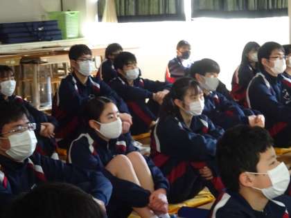 今年度は市立病院の主任助産師 佐藤郁子さんから性と生に関する幅広い知識を学びました。出産の動画を見たり、妊婦体験、赤ちゃんだっこ体験をして、いのちの尊さやこれからの自分の将来について学びました。
