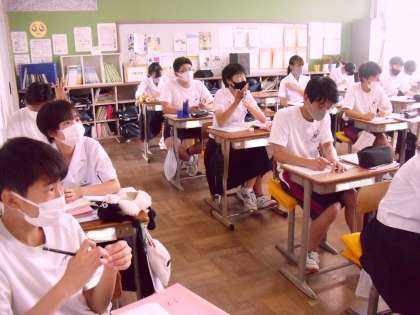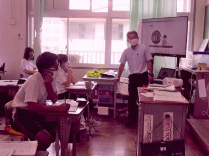 期末テストの範囲を授業者が解説していました。英文が長くて読むにたいへんですが、頑張ってください。