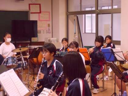 2・3年生の演奏の後、1年生が合流します。1年生も上手になってきました。全員での演奏はとっても楽しそうです。本番に向けて流れがスムーズにいくように、ラストスパートです。頑張ってください。