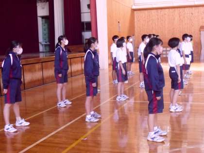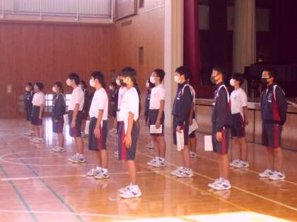 体育の部の総練習がグラウンドのぬかるみによって明日に延期されました。昼には、3年1組が合唱練習に取り組みました。ずいぶん以前に比べると声が前に出るようになり、男声と女声がバランスよく聞こえてきました。いいぞ、3年生!