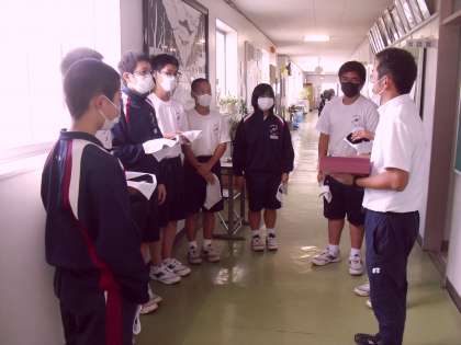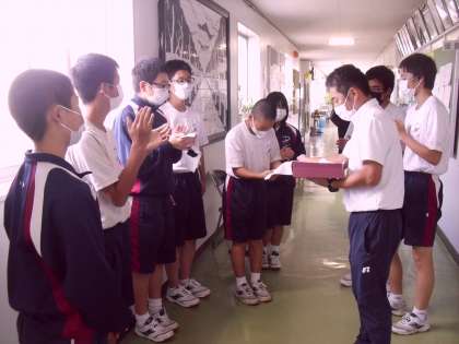 沼津市スポーツ祭初戦を17日に控え、部員に背番号が手渡されました。緊張した中にも、闘志があふれる瞬間でした。少人数ではありますが、大会で精一杯力を発揮してほしいと思います。