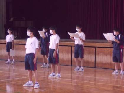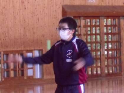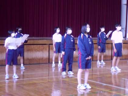 帰りの会終了後、体育館で2年生が合唱練習をしました。三つの学年の中で最も人数の少ない学年です。声量を心配していましたが、かなり前に声が出るようになってきました。写真は2年1組です。