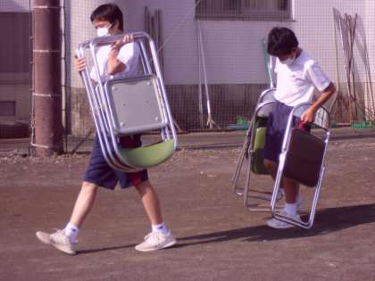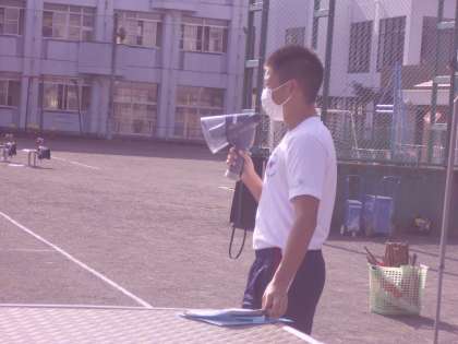 体育の部実行委員長がリーダーシップをとって全体に指示を出しています。