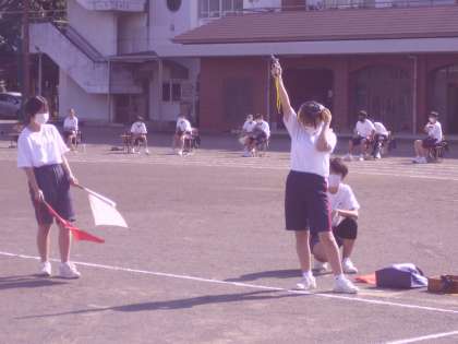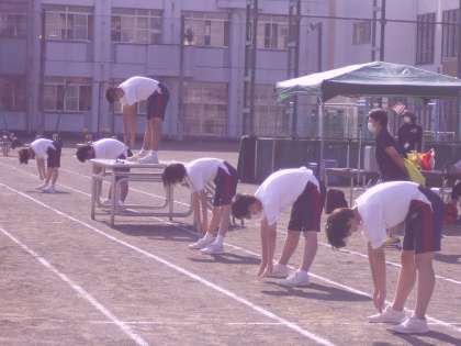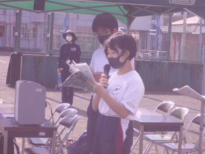 開会式の司会や準備体操を、実行委員がリードしています。競技を進めながら、係の動きを確認していきました。