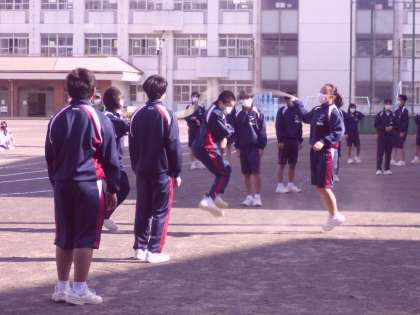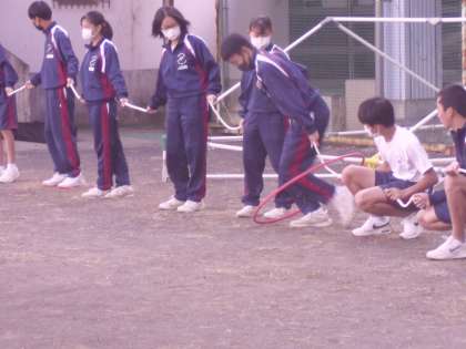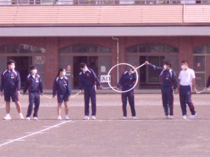 帰りの会終了後、各学級が運動場に出て、学年種目の練習を行っていました。どの学級も、最後に円陣を組んで団結を誓っていました。