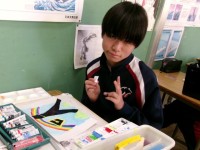地理の資料集が配布され、早速、世界遺産双六に挑戦していました。一人一台端末を用いて調べる生徒、地図帳と見比べながら床に教材を大きく広げて調べる生徒と様々な学びの姿があり、非常にうれしく思いました。