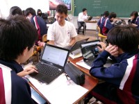二クラスともに「パペット」製作が終了し、廊下の長テーブルに作品がずらりと並びました。「セサミストリート」や「東京コミックショー」を思い出し、思わず笑顔になりました。