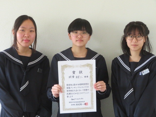 静岡県管打楽器アンサンブルコンテスト金管三重奏に出場した2年生です。
