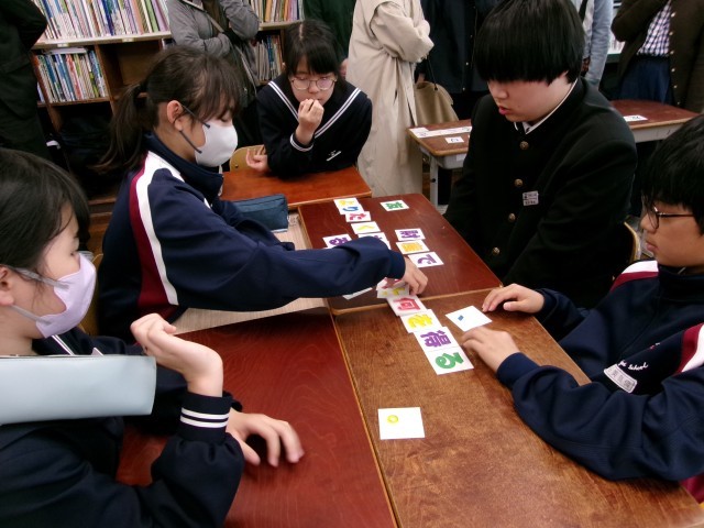 1文字ずつ書いてあるカードを並べ替え、グループで文章を完成させています。保護者のアドバイスや、保護者のグループもあり、楽しみながら活動していました。全てのグループが無事に素敵な文章を作り上げました。