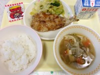 今日のメニューは、ごはん、牛乳、焼き塩鯖、じゃが芋の甘辛煮、豆腐となるとのすまし汁です。