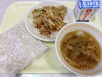 今日のメニューは、中華めん、牛乳、みそラーメン(スープ)、春巻、塩ナムルです。