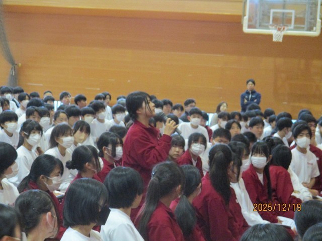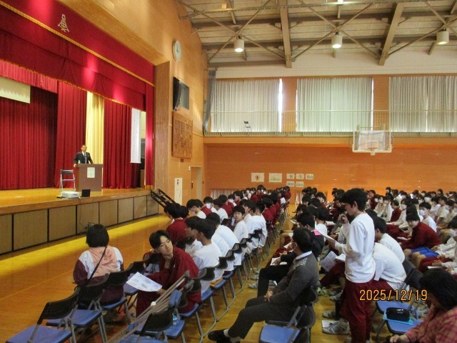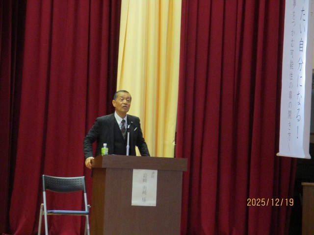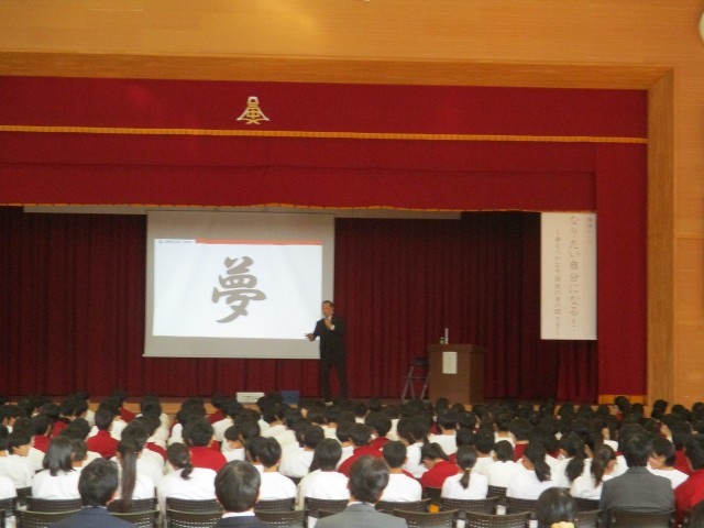 日本ペップトーク普及協会代表理事の岩﨑由純様をお迎えし、生徒・職員・保護者等を対象に「なりたい自分になる! ~夢をつかむ可能性の扉の開き方~」についてご講演いただきました。ペップトークとは「誰かを励ます 言葉かけ」のことですが、岩﨑様のたぐいまれなご経験によるエピソードからペップトークがもたらす影響、セルフペップトークについてなど、笑いと感動と自分も自分を励ませる人になろうと思えた貴重な時間となりました。