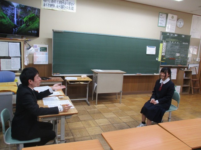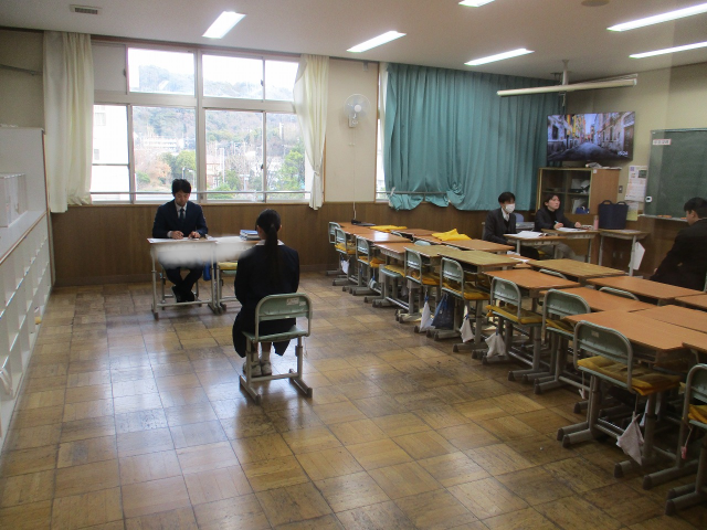 本日から始まった私立と国公立高校等の受験に向けた面接練習の様子です。