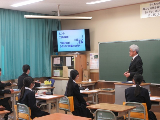 本日、2年生を対象に8校の公立高校の先生方をお迎えして高校説明会を実施しました。短い時間ではありましたが、各校の特色や魅力について大変わかりやすくお話しいただき、生徒たちは進路について考える貴重な機会となりました。また、多くの保護者の皆様にもご参加いただき、進路への関心の高さが伺えました。ご多用の中、本校にご来校いただきました先生方に心より感謝申し上げます。