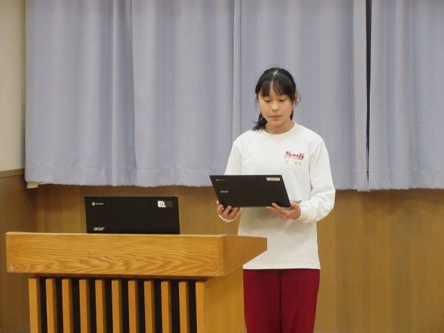 オンラインで生徒集会が行われました。図書委員会はクイズを交えながら本校の蔵書数や今年度の貸し出し状況を紹介、さらに沼津市ライオンズクラブ様から贈呈いただいた本の紹介もあり、本に親しむ大切さが改めて共有されました。生徒会からは3年生を送る会についての案内があり、令和7年度の締めくくりに向けた活動が本格的に始まります。一つ一つの取組みが学校を創ります。生徒が主役の三中は着実に前進しています。