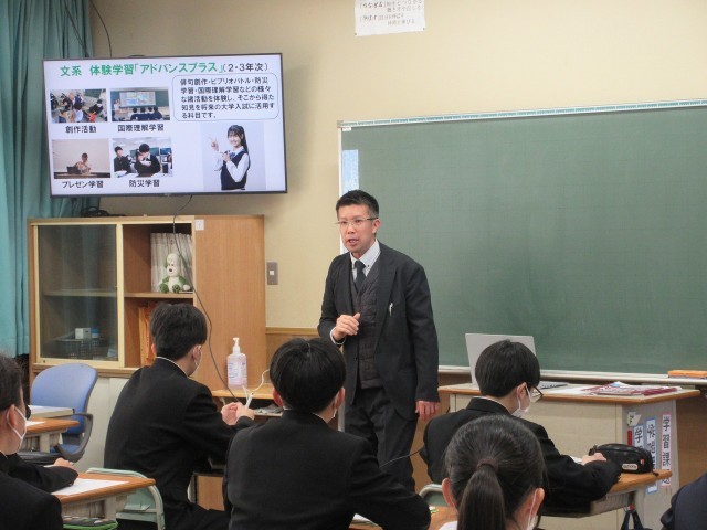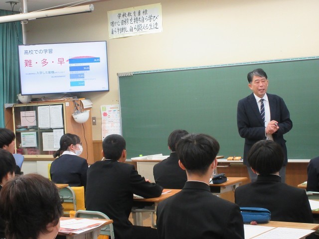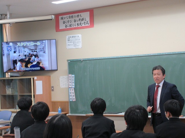 本日、私立高校7校の先生方にご来校いただき、校内にて高校説明会が実施されました。各校からは教育方針や特色あるカリキュラム、学校生活の様子などについて具体的でわかりやすいお話をいただきました。どの高校も生徒が生き生きと学び充実した日々を過ごすことができる魅力があふれていました。また、多くの保護者の皆様にもご参加いただきご家庭と共に進路について考える大変有意義な時間となりました。ご多用の中、各校の先生方、そしてご参加いただいた保護者の皆様に心より感謝申し上げます。