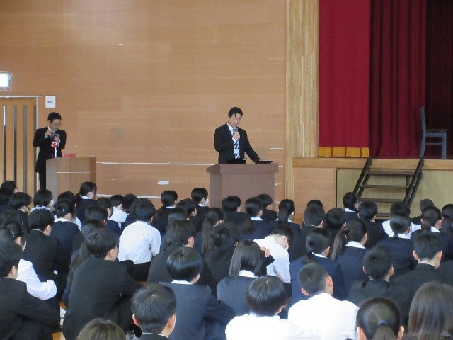 本日、令和8年度1学期始業式を行いました。春休み中、大きな事故もなく、生徒たちが元気に登校してきたことを何よりうれしく思います。学校に明るい声が戻り、新しい一年が動き出しました。この日常の尊さを大切にしながら、一日一日を丁寧に積み重ねていく一年にしていきます。