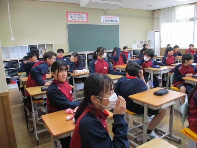 1年生の学級組織決めの様子です。中学生になって初めての組織決め、最初の説明は静かに真剣に聴いていましたが、自分は何をしたいか?どんなことをしたらクラスの役に立てるのか、友達と意見を交換している姿も見られました。