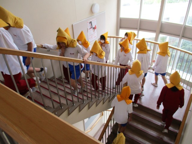 第1回目の避難訓練を実施しました。津波を想定し、全員4Fの廊下や1年生の教室に避難する訓練を行いました。落ち着いて素早く非難する姿や、点呼中静かに待つ態度はとても立派でした。