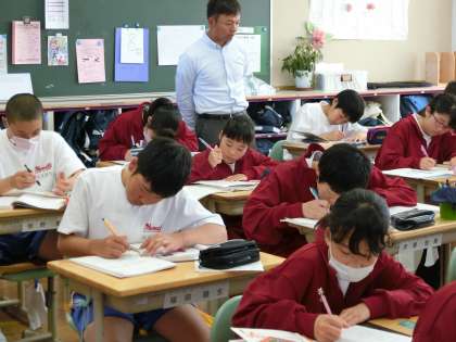 1年E組家庭は、高原教室に出かけた濱村先生の代わりに、塚本先生が入り、楽しいお話をしてくれています。
