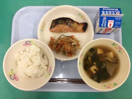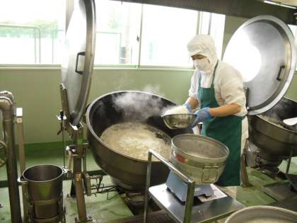第三中学校の給食室では、回転釜という大きな鍋でご飯を炊いています。