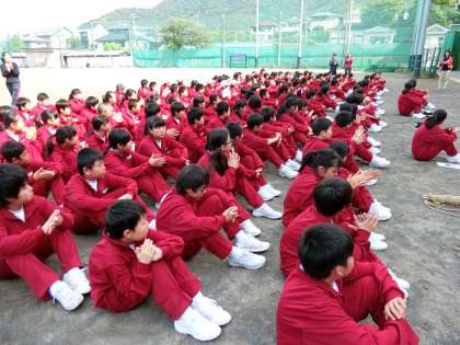 始めにグランドに集合し、全体会です。
