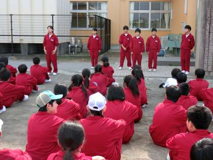 学年委員さんの司会で、今日のルールなどを説明しています。皆、楽しそうに聞いています。