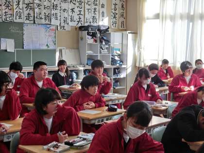 2年B組言語読解は、ビブリオバトルを行っています。自分の読んだ本について紹介し、誰の本を読みたくなるか投票してトップ本を決めます。表現力も必要です。