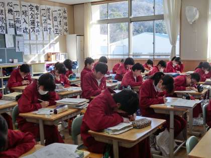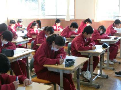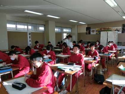 1年C組社会は、世界の諸地域のまとめの問題を解いています。