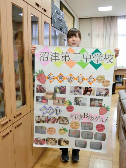 また、同時に沼津市給食展が開催されます。本校では、給食委員会の活動や言語読解の授業で考えた「沼津市B級グルメ」の作品を載せています。ぜひ、御来場の際に、給食展もご覧ください。