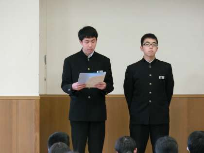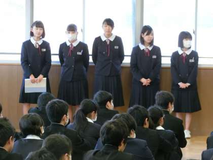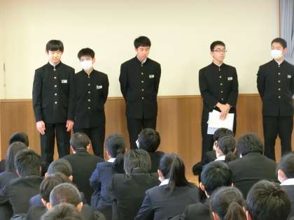 3年生の学年朝礼は、言語読解の時間に行った「ビブリオバトル」の優秀者による発表を行います。学年委員会の生徒の説明がありました。