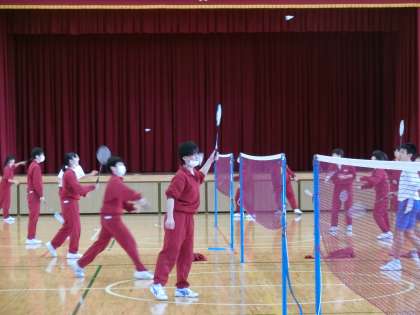 3年A組保体は、バトミントンで楽しく取り組んでいます。