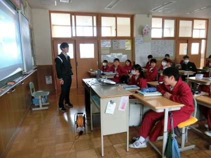 2年F組英語は、Which is 〜?の構文の練習しています。
