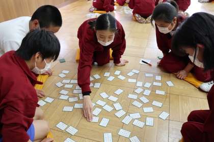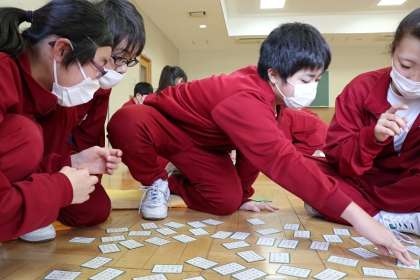 百人一首大会の続きです。クラスの垣根を越えて百人一首を楽しみながらも、熱い対戦が繰り広げられました!