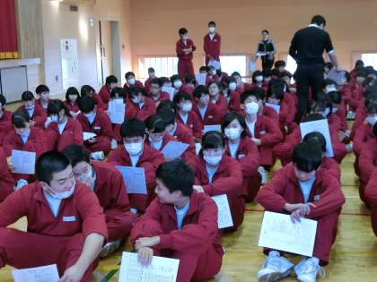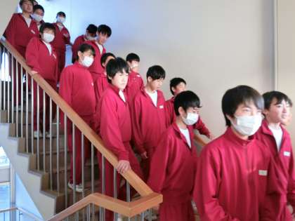 先週金曜日、職員室が火災になったという想定で、清掃の時間中に避難訓練を行いました。この訓練の日時は、生徒に事前に周知せず、不意を突く形で行いました。清掃の途中でしたが、それぞれの清掃の活動場所から体育館に向かい、人数確認して防災カードを担任が渡しました。体育館に入ると、生徒は落ち着いて活動できました。