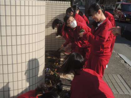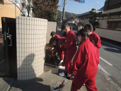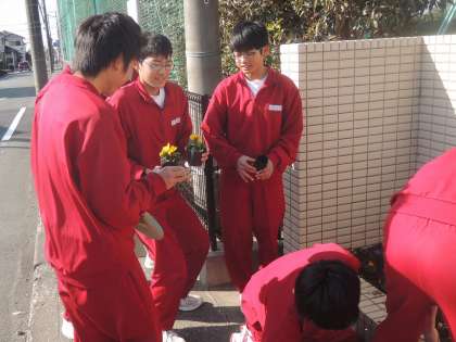 福祉委員長の呼びかけで、ボランティアの生徒も集まり、校門前の花壇にパンジーを植え替える作業を行ってくれました。冷たい風の中、頑張ってくれました。