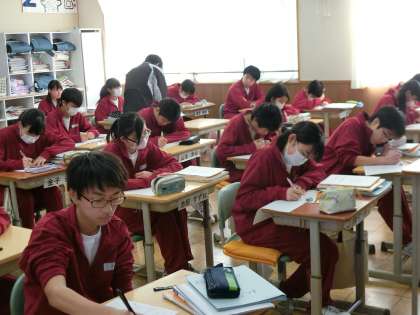 2年B組数学は、図形の証明問題を挑戦するところです。