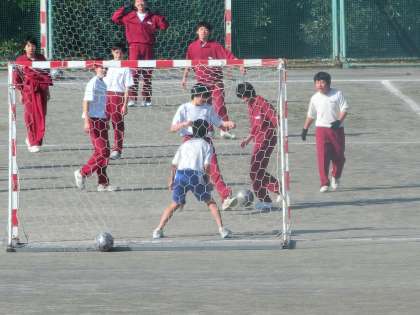 2年C組保体は、サッカーのゲームを楽しんでいます。